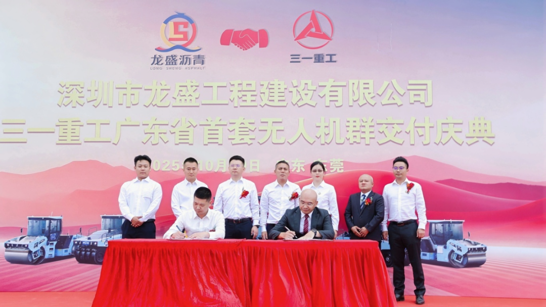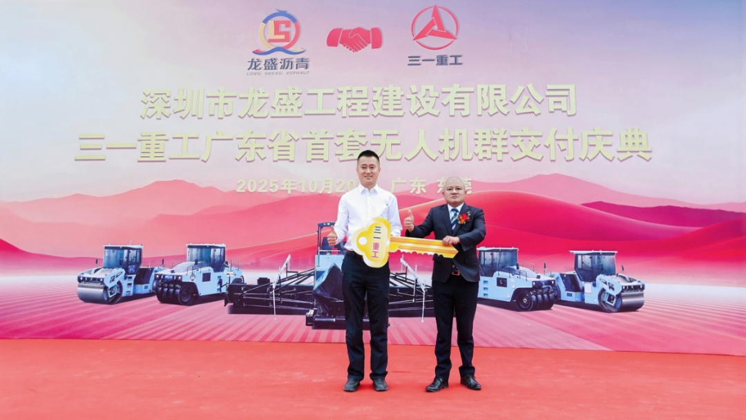 当工业制造与数字智慧深度融合,当传统基建与智能科技碰撞创新,一场重塑路面施工行业格局的变革,正在莞城这片热土上拉开序幕。10月20日,深圳市龙盛工程建设有限公司与三一重工共同举办“广东省首套无人摊铺机群交付庆典”。这不仅是一次设备的交接,更是向“智能建造”时代迈进的重要标志,以先进科技为行业发展擘画崭新蓝图。