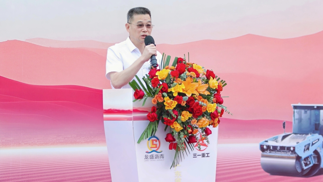 广东省公路学会理事长洪显诚先生代表学会对交付庆典的顺利举行表示祝贺,并向勇于开拓的龙盛沥青和提供技术鼎力支持的三一重工致以崇高敬意。他表示,此次无人摊铺机群的交付,是我省公路交通基础设施迈向“智能建造”的关键一步,具有重要的标杆示范意义。希望龙盛充分运用这套系统,总结可复制、可推广的施工工法,并期待更多企业投身科技创新,共同提升我省公路建设科技水平。广东省公路学会将继续发挥桥梁纽带作用,推广创新成果,助力公路交通事业高质量发展。
