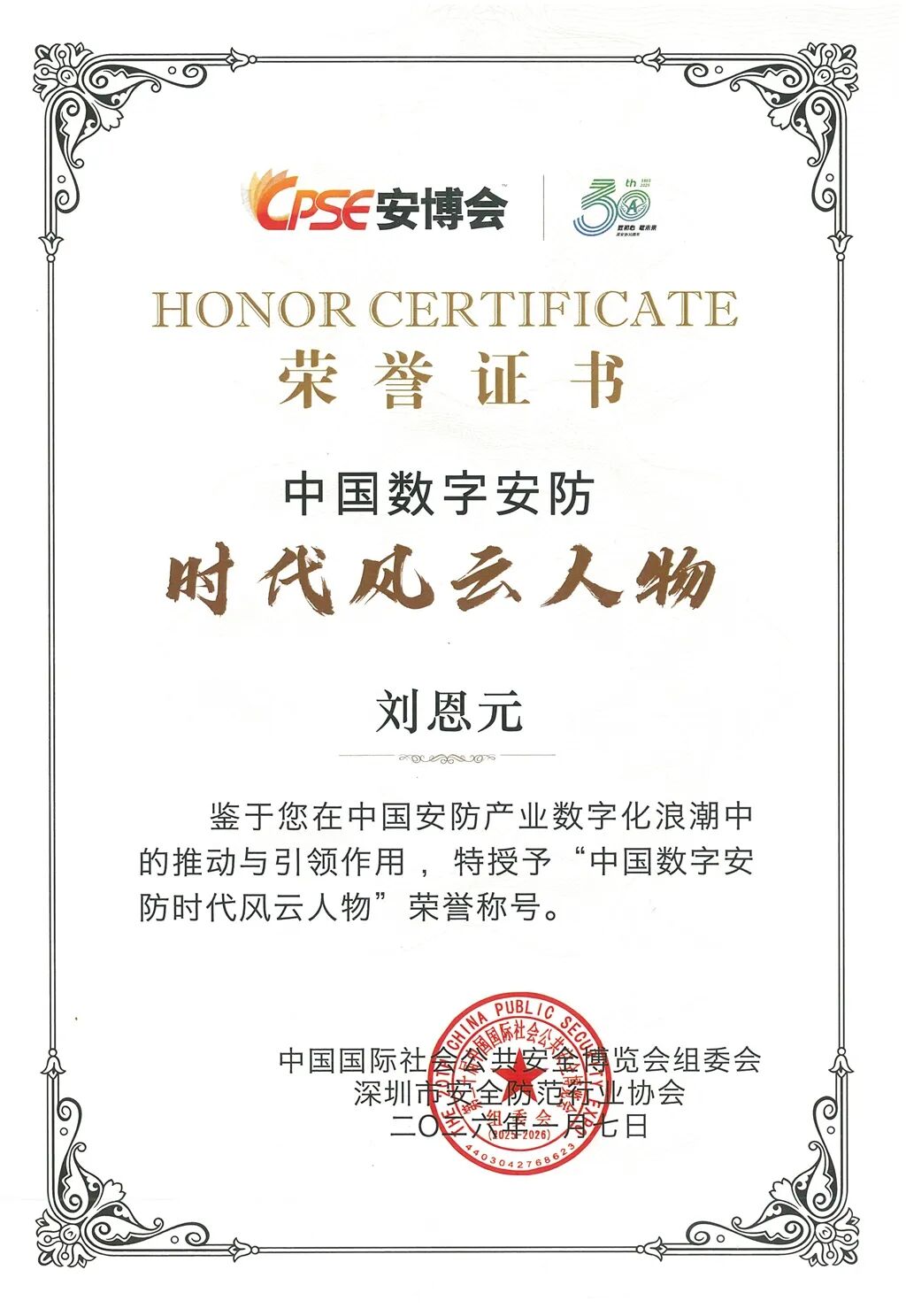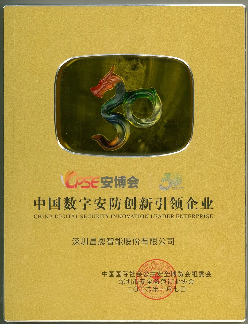 活动现场,“中国数字安防时代风云人物”“中国数字安防创新引领企业”等评选结果正式揭晓并举行颁奖仪式。深圳昌恩智能股份有限公司董事长刘恩元凭借在数字安防领域的深耕积淀、卓越行业领导力及对产业数字化转型的突出贡献,荣膺“中国数字安防风云人物”称号;深圳昌恩智能股份有限公司因在技术革新、AI场景深度落地及市场核心竞争力等方面的亮眼表现,获评“中国数字安防创新引领企业”,公司行政人力中心总监梁汝浈代表企业登台领奖。