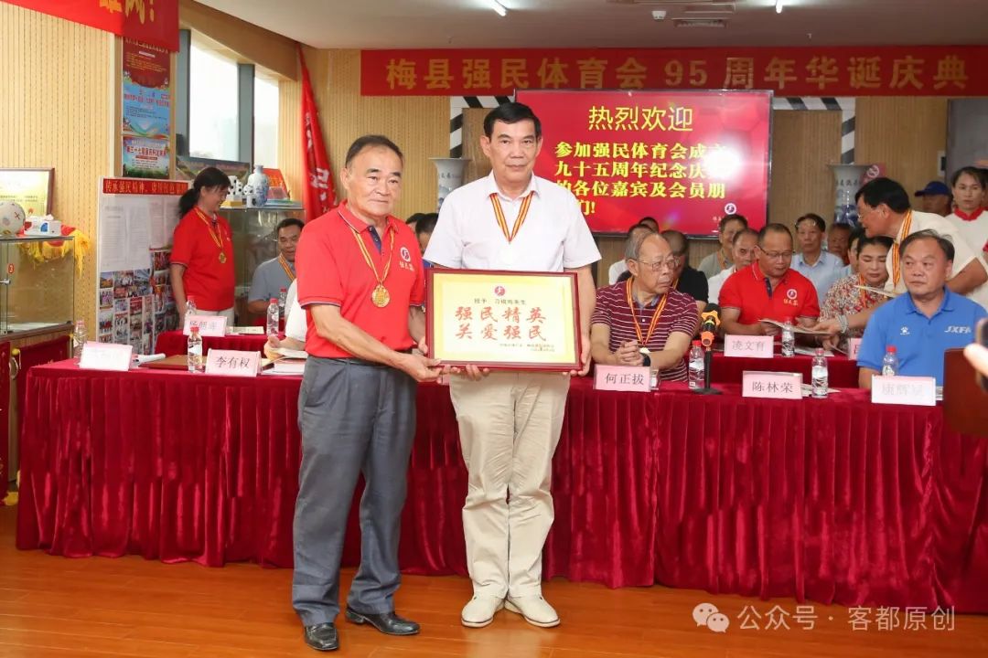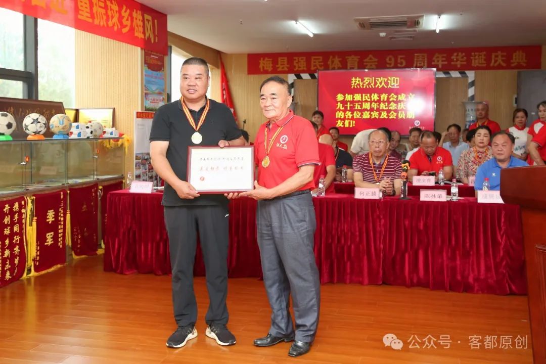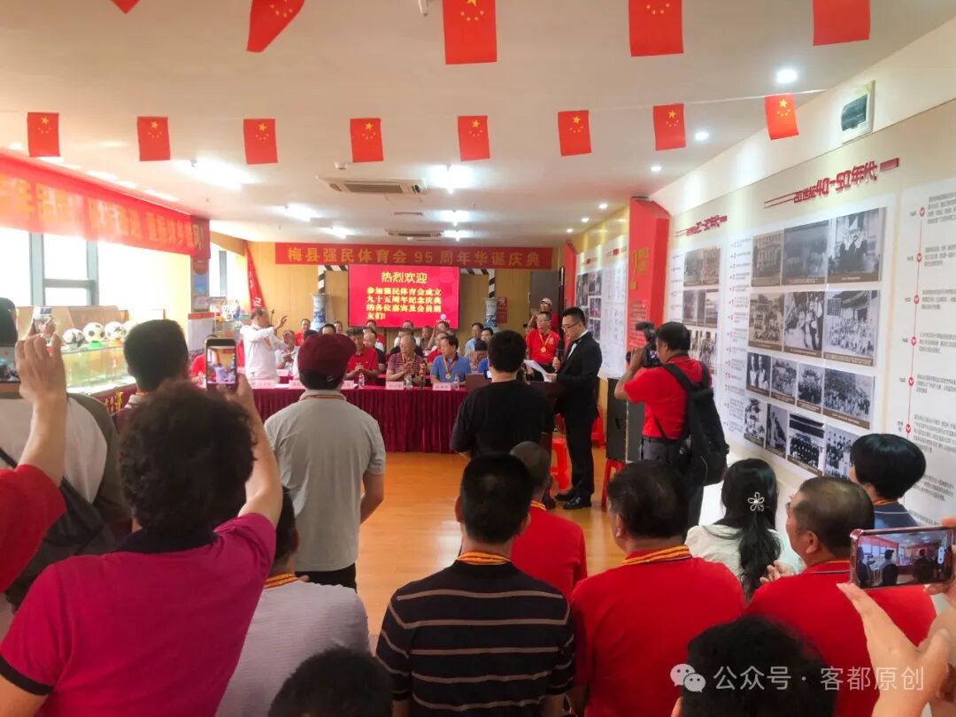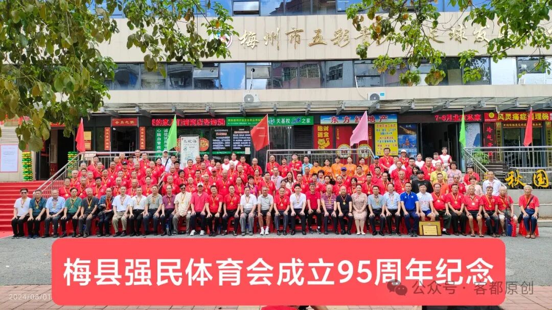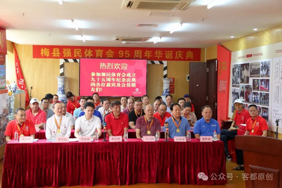 2024年8月1日,梅县强民体育会成立95周年庆典活动在强民大楼举行。中国足协原副主席、广东省体育局原局长、梅县强民体育会永远荣誉会长董良田,梅州市人民政府原市长、梅州市关工委主任何正拔,梅州市体育局副局长、梅州市足协主席李新海,梅州市荣誉市民、慈善家李有权,赣州市足协常务副主席康辉斌,梅州市关工委常务副主任陈林荣,中国青少年进校园足球发展计划领导小组办公室吕彦红主任,梅州市老干大学常务副校长、梅州日报原总编辑黄山松,梅县区政协原副主席李元申,深圳市梅县商会执行会长杜尚顺,深圳狮子会公益足球俱乐部主席高凌,梅州市老促会监事长魏金华,梅州市体育运动学校原校长卜义文,梅州市发展顾问办主任易道先,梅州市发展顾问办原主任罗焕文,客家文化学者、旅外乡贤陈云生,曾雪麟球友会会长薛剑雄,热心球乡足球事业、全力支持强民体育会发展的旅深乡贤何丽仙女士,国足队员黄德宝,梅县区业余体校副校长张良华,梅县强民体育会会长古向明,常务副会长兼秘书长朱星发,副会长黄德保、邹东升等,以及相关部门领导、媒体记者、各队领队、教练、球员,强民体育会骨干、会员、老前辈200多人等参加庆典活动。